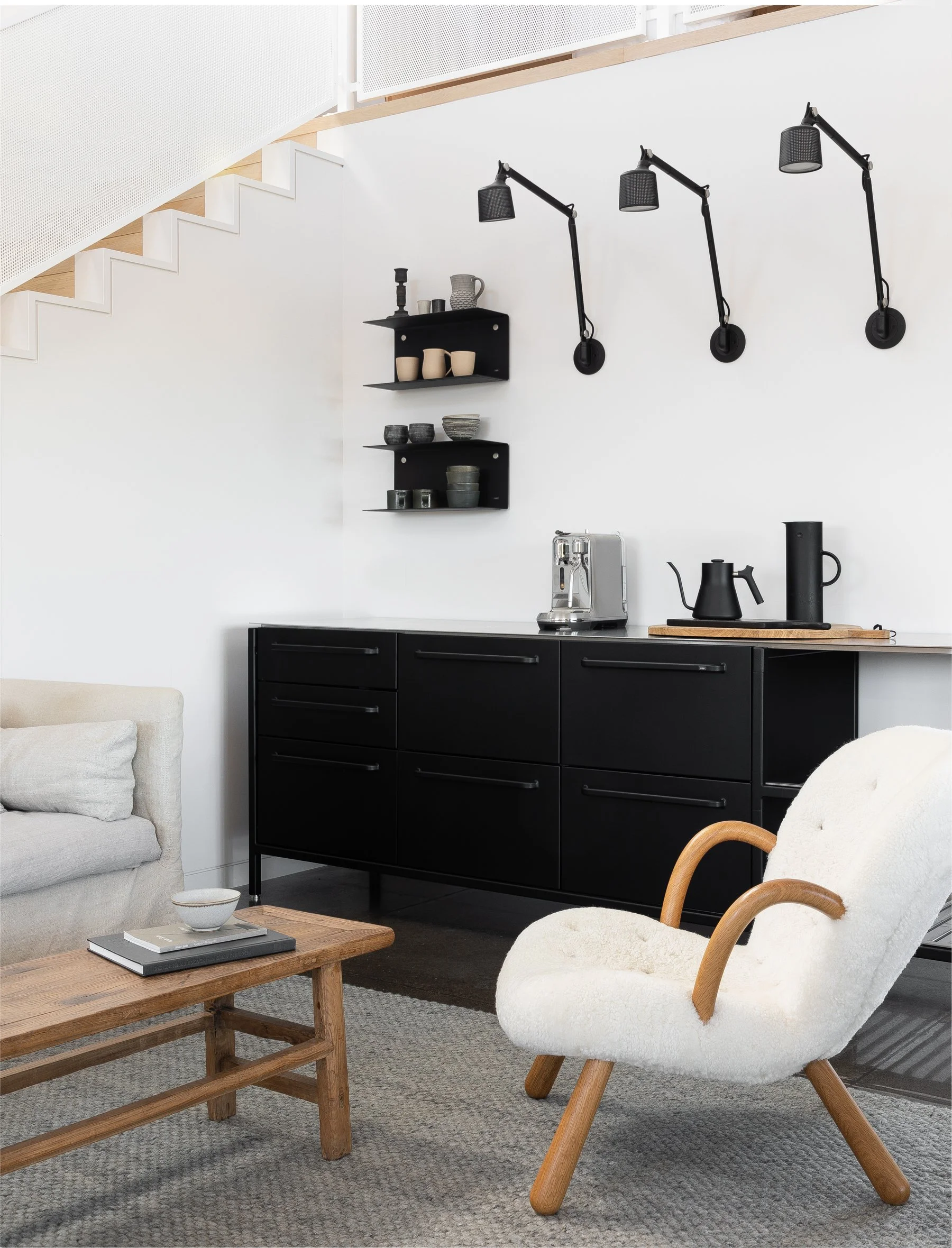 We custom designed the stainless steel island to compliment the minimal industrial aesthetic.
