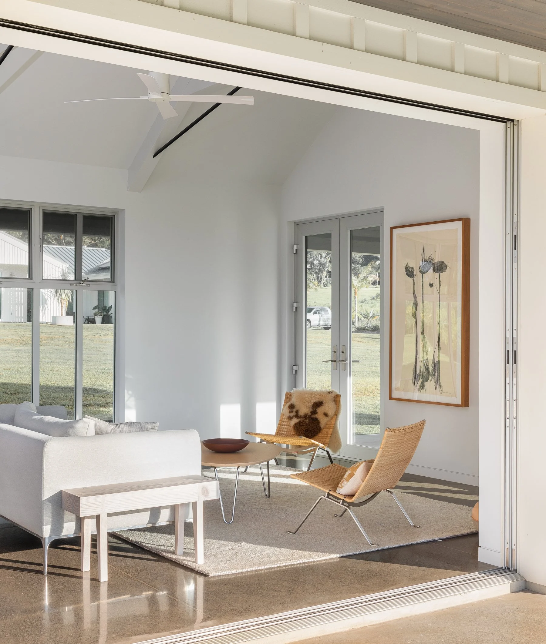 Inspired by the Scandinavian barn vernacular, this Upcountry Maui cottage and barn for Cloth and Goods' Melissa Newirth and Crossing the Threshold's David Johnson provides a peaceful minimalist retreat and respite for family gatherings. The 1,000 sf. long and low main cottage is sited to capture both mountain and sea vistas while the adjacent barn is designed to hold large family gatherings and act as a seasonal residence. Melissa, with impeccable minimalist yet richly textured taste, requested a highly efficient and livable environment with access to a variety of outdoor living zones.